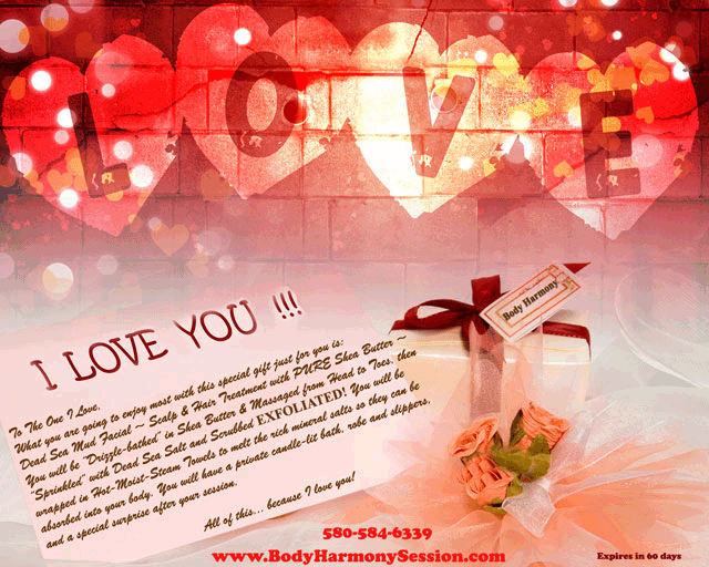 TO PURCHASE: Phone Body Harmony Day Spa at: 580-236-7777 ~ Master Charge & Visa accepted